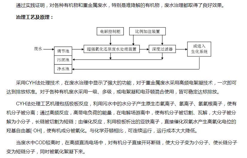 超強(qiáng)氧化還原廢水處理裝置(CYH法)處理各種有機(jī)廢水、各種重金屬?gòu)U水