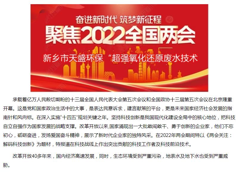 中國(guó)高新技術(shù)網(wǎng)發(fā)布:《關(guān)注:解碼科技創(chuàng)新》——新鄉(xiāng)市天盛環(huán)保“超強(qiáng)氧化還原廢水處理技術(shù)”