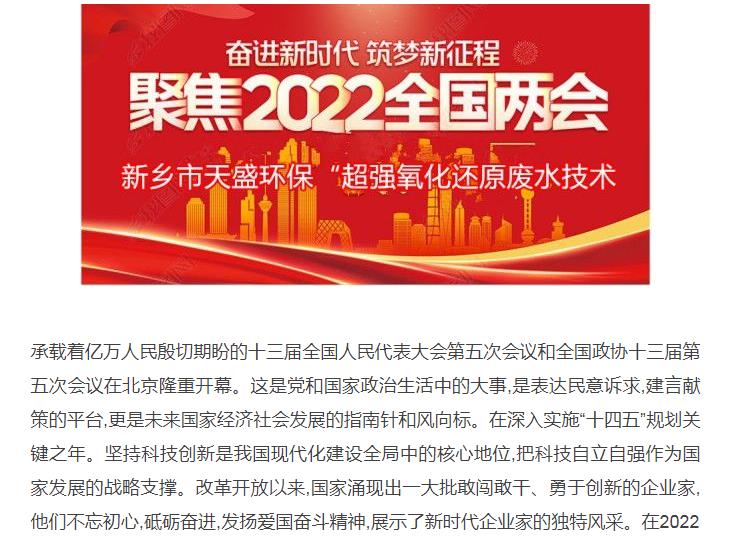新華在線轉載:《關注:解碼科技創新》——新鄉市天盛環保“超強氧化還原廢水處理技術”